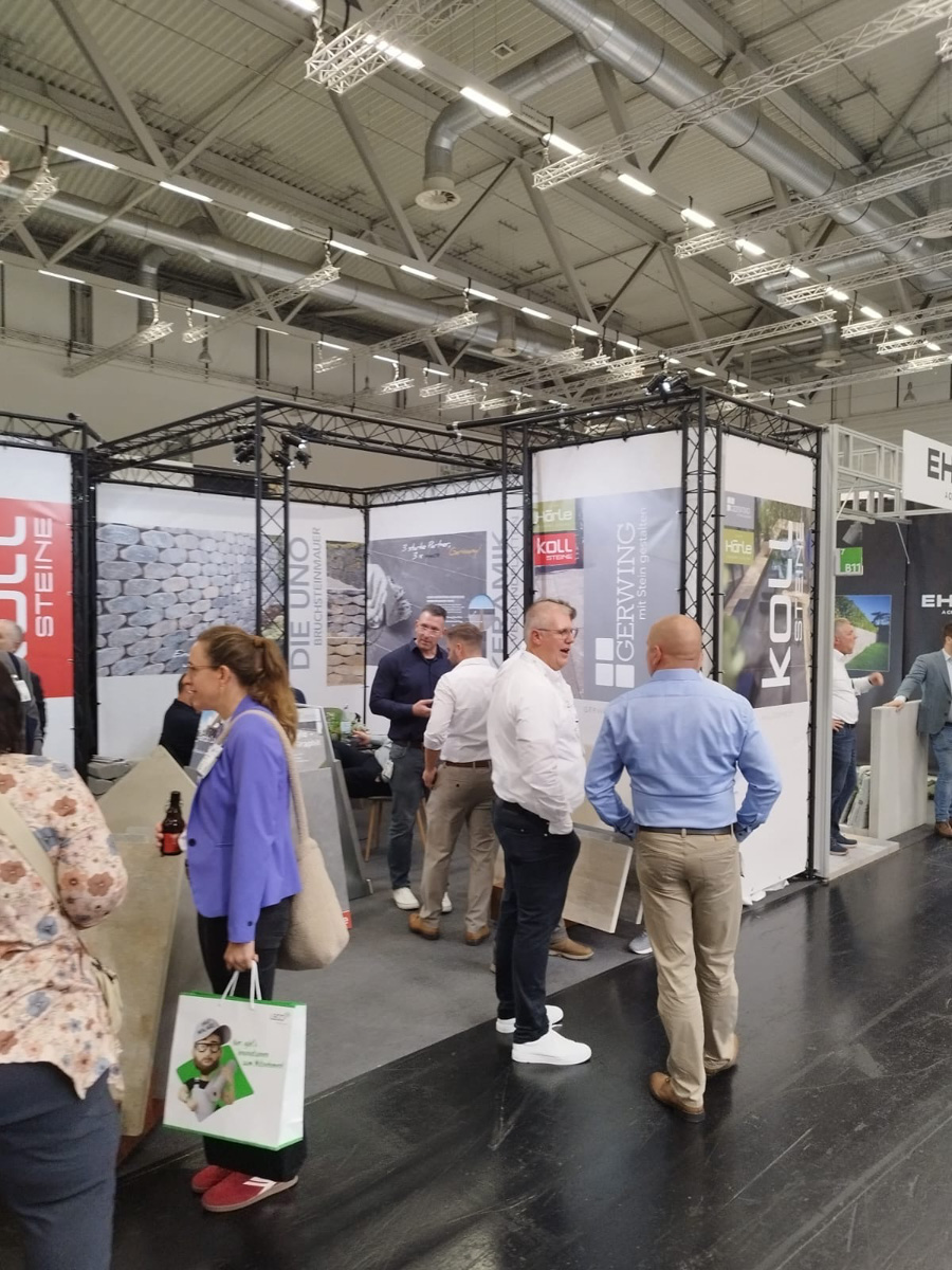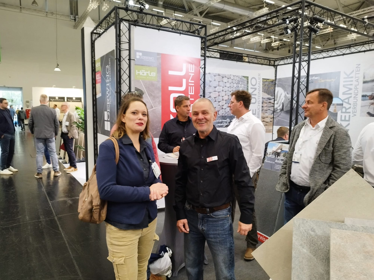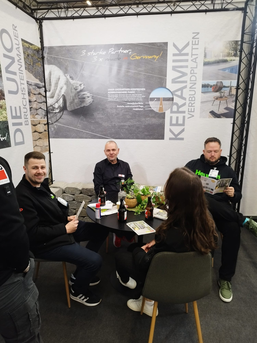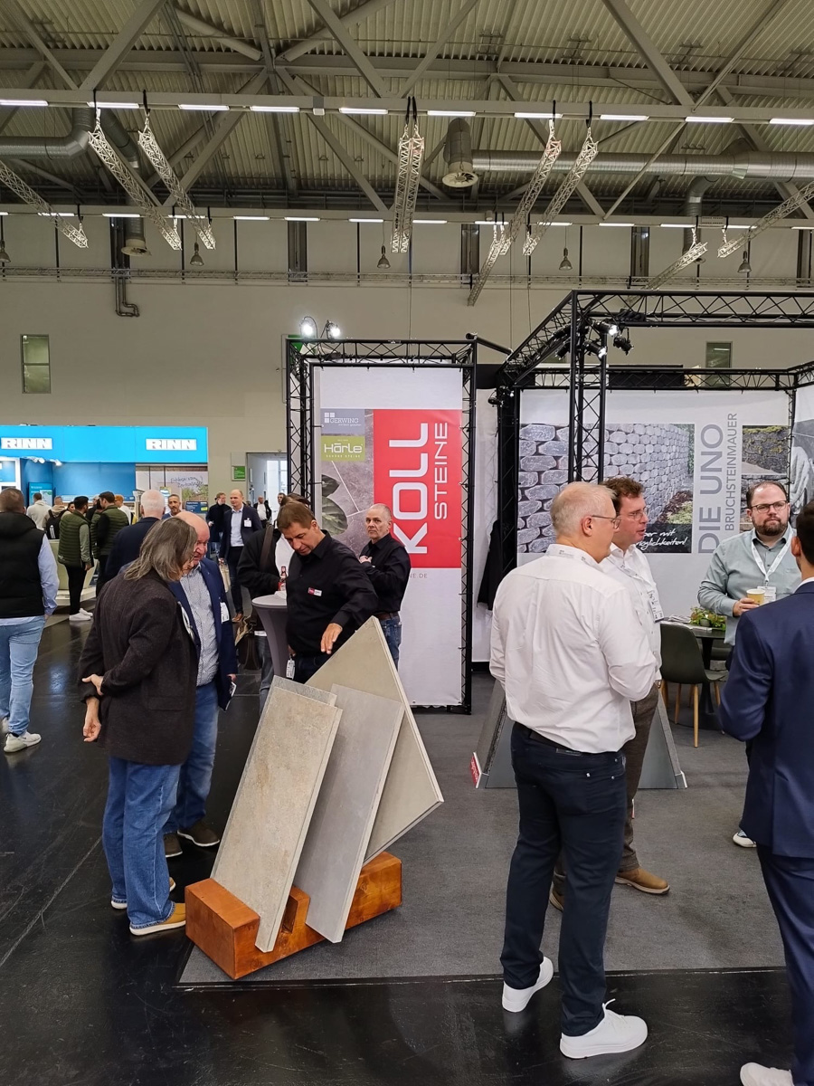 Auf dem EUROBAUSTOFF FORUM am 9. und. 10. November 2025 präsentierten wir gemeinsam mit unseren Strategiepartnern Gerwing Steine und Härle Steine unsere Produktneuheiten für 2026 einem starken Fachpublikum aus Deutschland, Österreich und der Schweiz. Vor zahlreichen Fachbesuchern und Händlern stellten wir auf unserem Messestand wegweisende Lösungen für die moderne Außenraumgestaltung vor: darunter das innovative Terrassenplattenprogramm – eine puristische Beton-Feinsteinzeug-Verbundplatte in trendigen Farben und authentischen Natursteinoberflächen, erhältlich in den Formaten 90×90×4 cm und 90×45×4 cm. Ein weiteres Highlight war unser neues Bruchsteinmauersystem, das nicht nur durch seine Optik überzeugte, sondern dank seiner offenen Fugen auch wertvollen Raum für die Natur lässt.