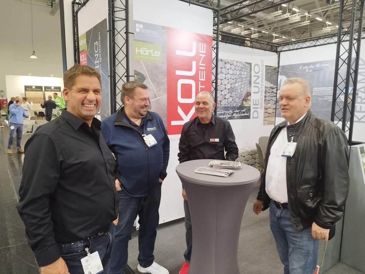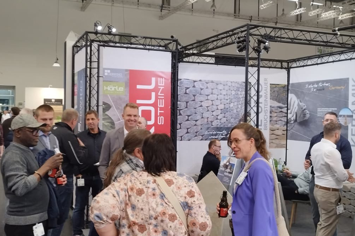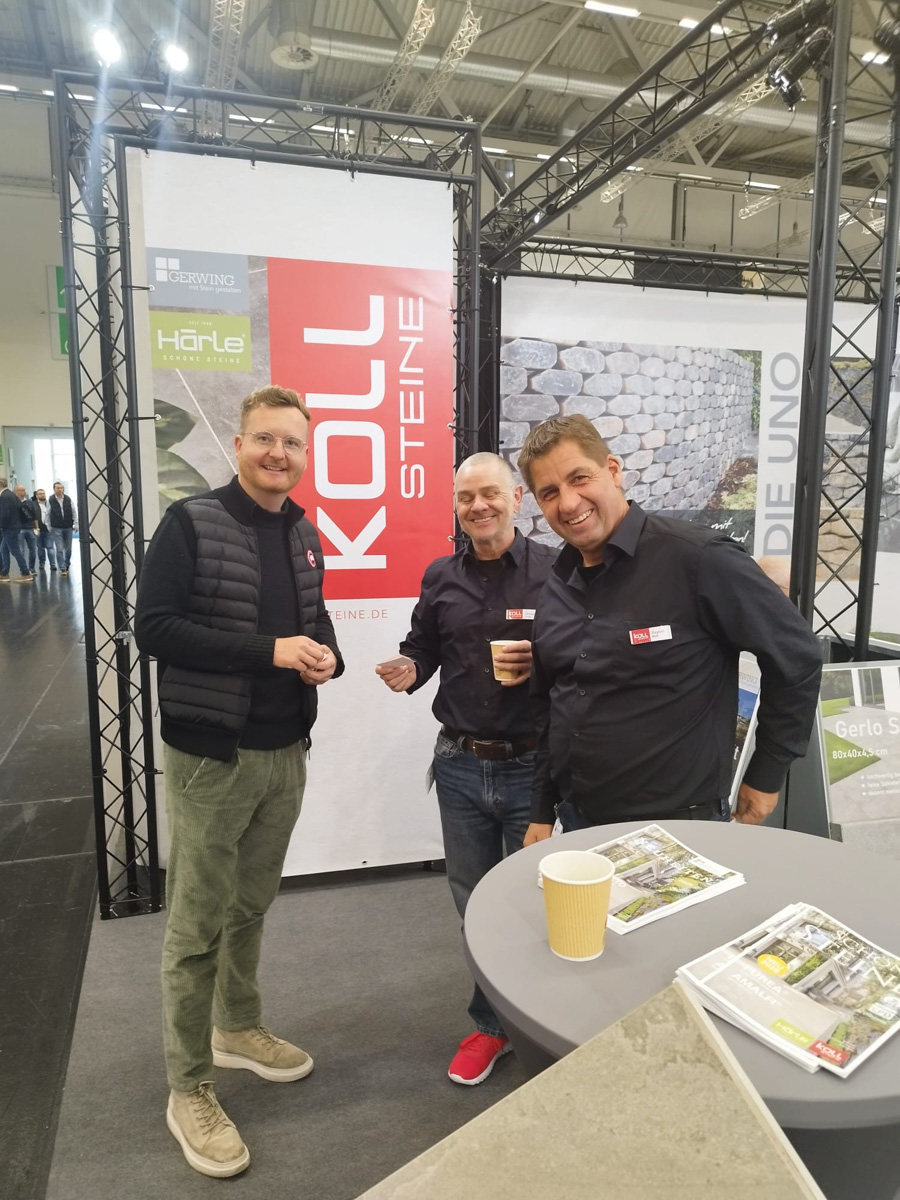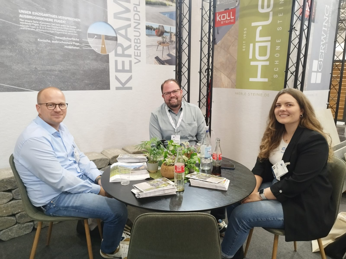 Auf dem EUROBAUSTOFF FORUM am 9. und. 10. November 2025 präsentierten wir gemeinsam mit unseren Strategiepartnern Gerwing Steine und Härle Steine unsere Produktneuheiten für 2026 einem starken Fachpublikum aus Deutschland, Österreich und der Schweiz. Vor zahlreichen Fachbesuchern und Händlern stellten wir auf unserem Messestand wegweisende Lösungen für die moderne Außenraumgestaltung vor: darunter das innovative Terrassenplattenprogramm – eine puristische Beton-Feinsteinzeug-Verbundplatte in trendigen Farben und authentischen Natursteinoberflächen, erhältlich in den Formaten 90×90×4 cm und 90×45×4 cm. Ein weiteres Highlight war unser neues Bruchsteinmauersystem, das nicht nur durch seine Optik überzeugte, sondern dank seiner offenen Fugen auch wertvollen Raum für die Natur lässt.