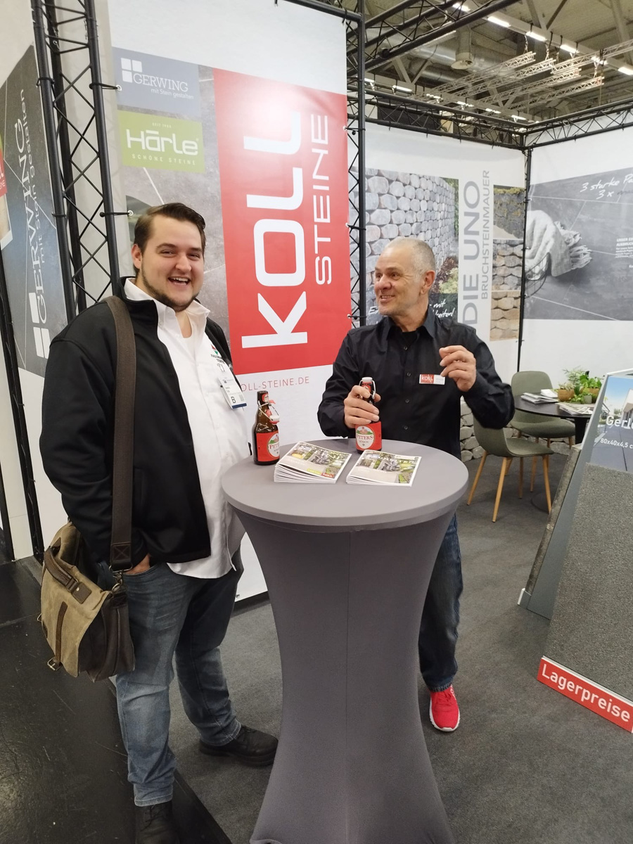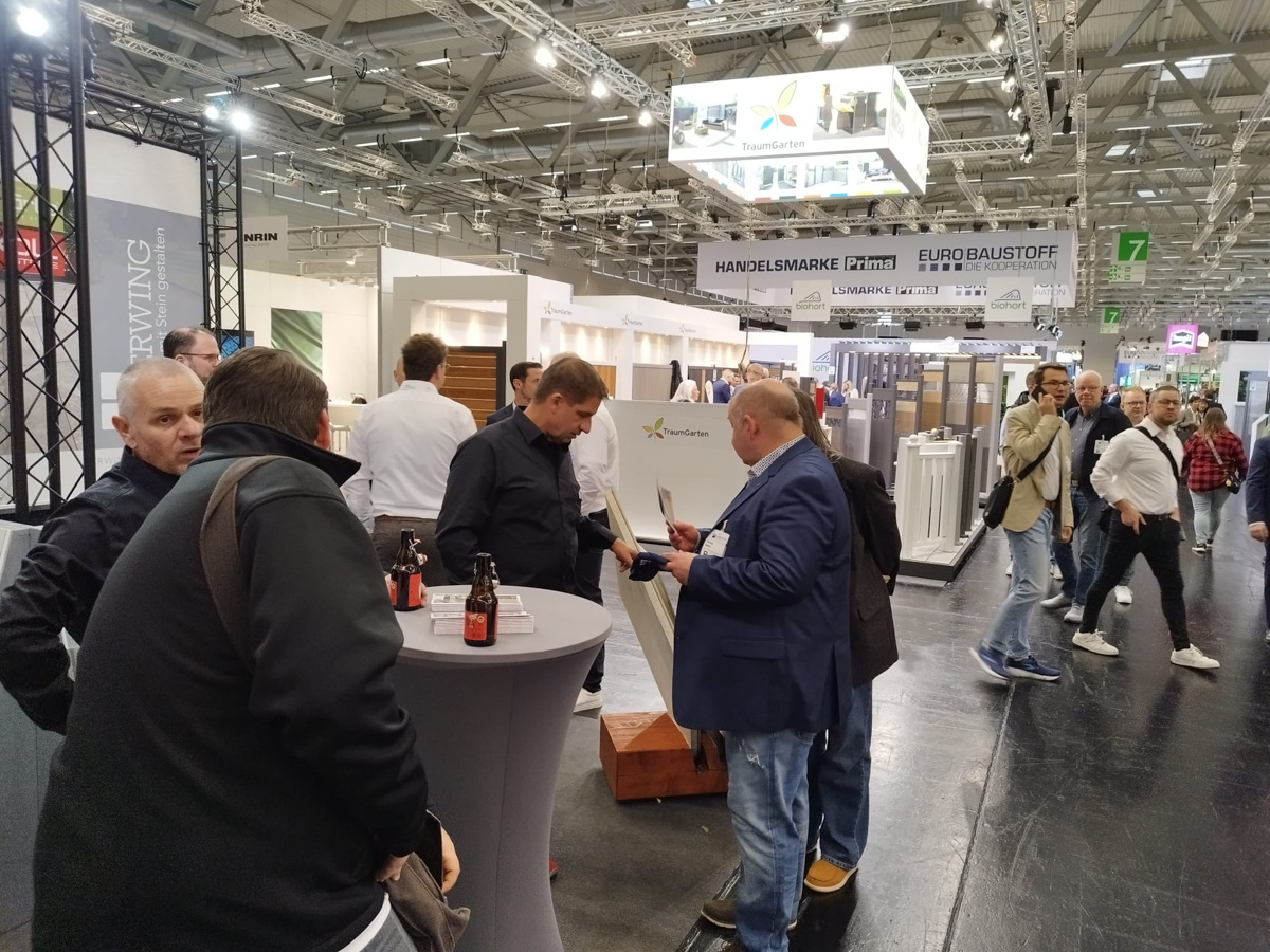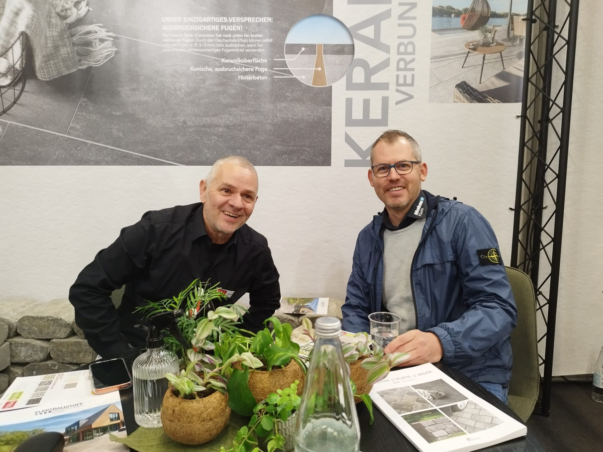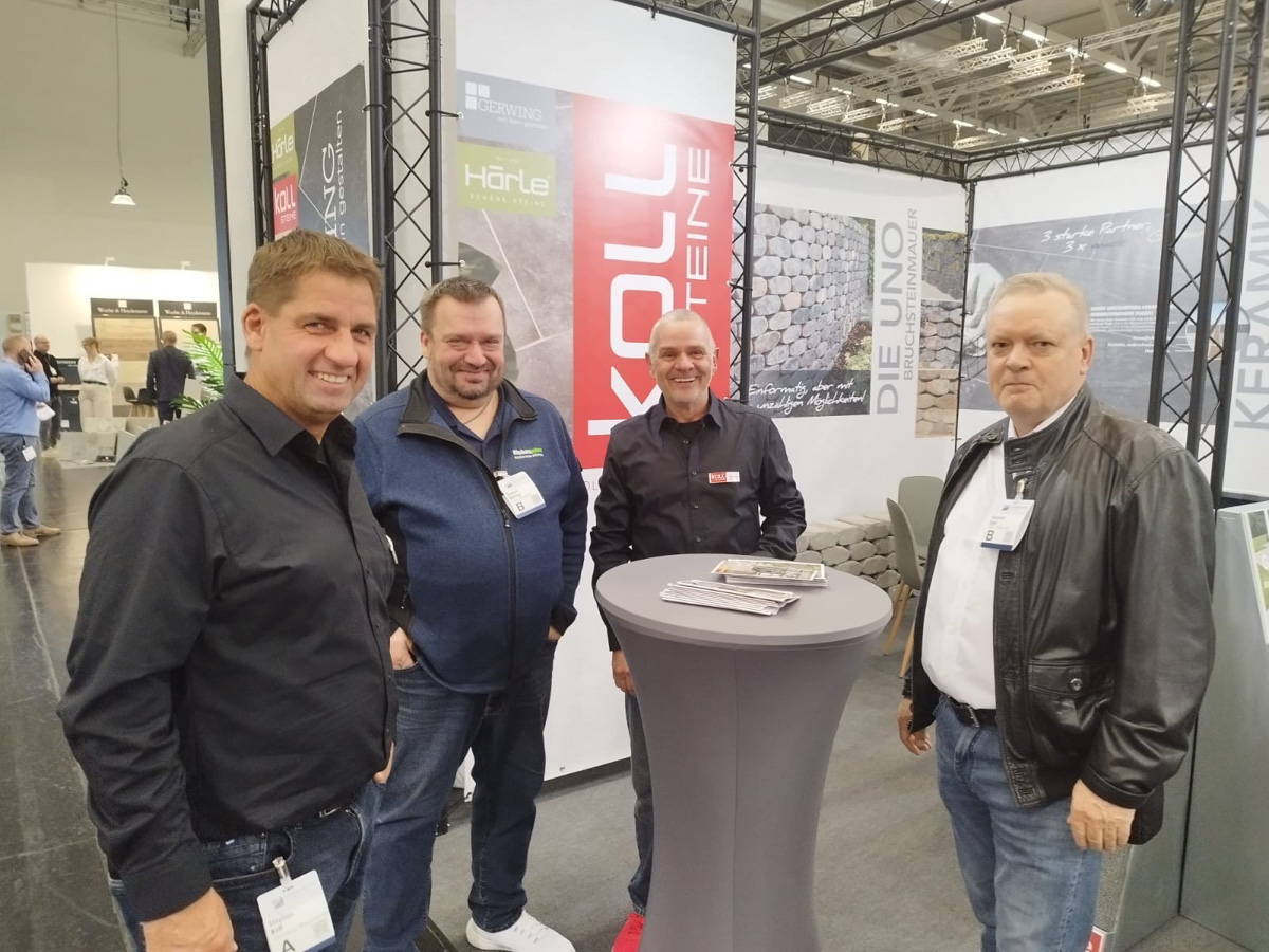 Auf dem EUROBAUSTOFF FORUM am 9. und. 10. November 2025 präsentierten wir gemeinsam mit unseren Strategiepartnern Gerwing Steine und Härle Steine unsere Produktneuheiten für 2026 einem starken Fachpublikum aus Deutschland, Österreich und der Schweiz. Vor zahlreichen Fachbesuchern und Händlern stellten wir auf unserem Messestand wegweisende Lösungen für die moderne Außenraumgestaltung vor: darunter das innovative Terrassenplattenprogramm – eine puristische Beton-Feinsteinzeug-Verbundplatte in trendigen Farben und authentischen Natursteinoberflächen, erhältlich in den Formaten 90×90×4 cm und 90×45×4 cm. Ein weiteres Highlight war unser neues Bruchsteinmauersystem, das nicht nur durch seine Optik überzeugte, sondern dank seiner offenen Fugen auch wertvollen Raum für die Natur lässt.
