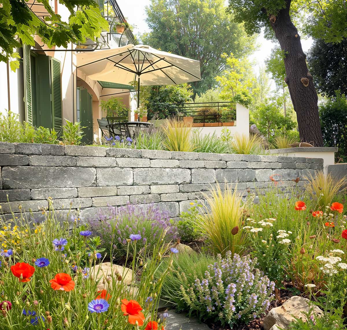 Ergänzen Sie die Mauersteine durch die Amalfi- Palisade und das Amalfi-Pflaster – so passt alles zusammen!