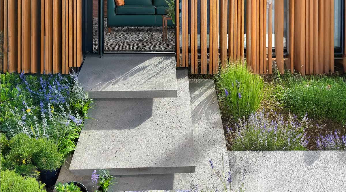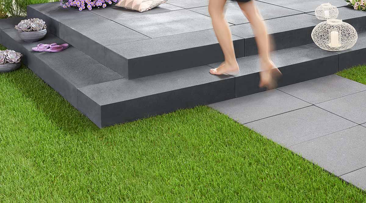 Die AVELINA-Stufenplatten ergänzen das an Farb- und Oberflächenauswahl besonders vielfältige Balkon- und Terrassenplattenprogramm hervorragend. Spielend leicht lassen sich damit bauseits flexibel unterschiedliche Stufenhöhen und -breiten herstellen. So machen Neugestalten und Sanieren Spaß!