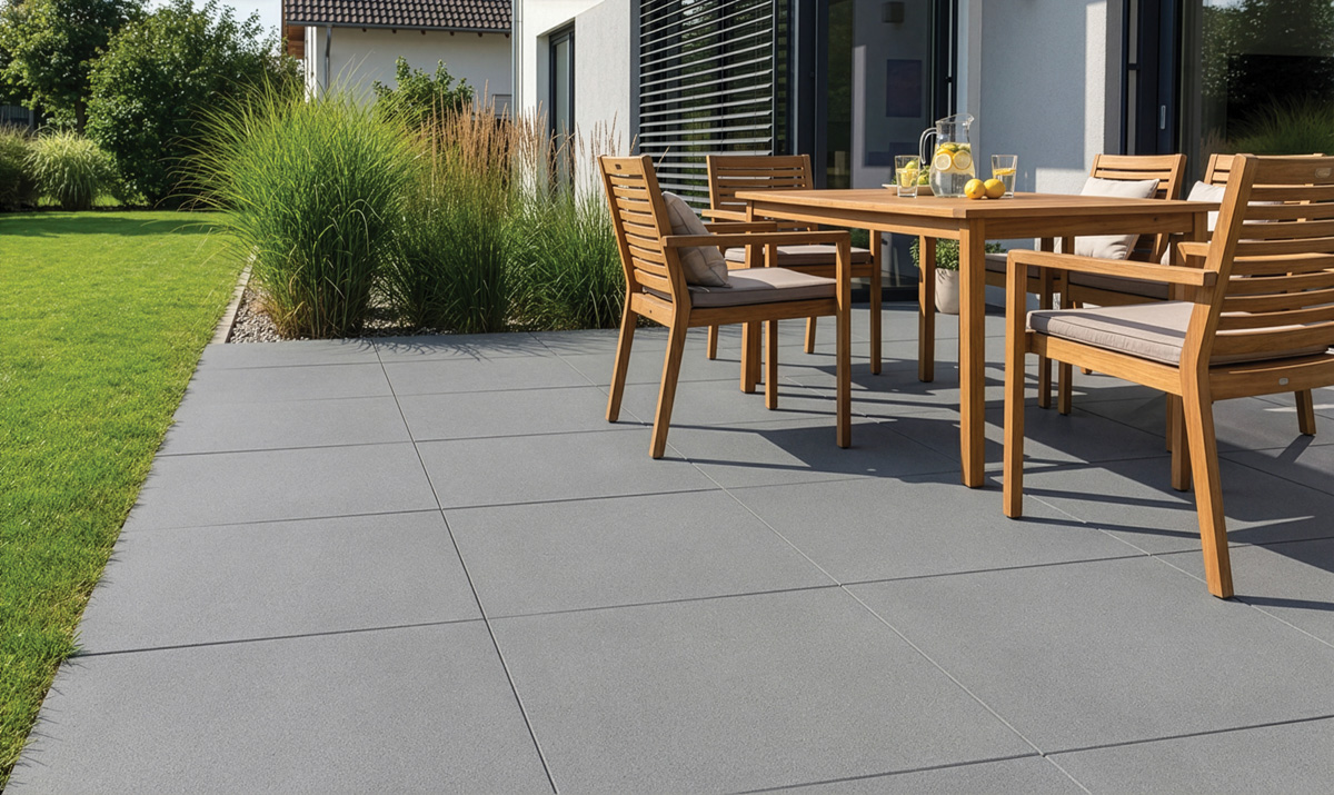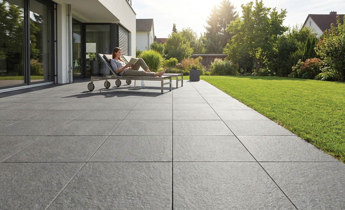 Dieses Terrassenplattensystem ist schlichtweg chic in Design, Farbgestaltung und Form. Die Formate 80 x 40 cm und 60 x 60 cm überzeugen darüber hinaus mit der geringen Steinstärke von nur 3 cm!