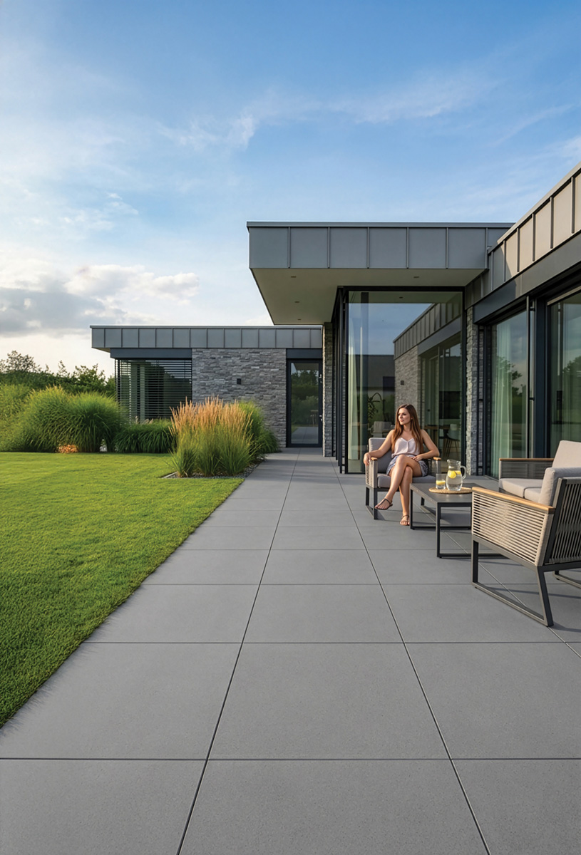 Dünner, leichter und ressourceneffizienter als herkömmliche Terrassenplatten aus Beton, ist AVELINA XXL nicht nur auf schönen Gartenterrassen zu Hause, sondern auch häufig von Architekten die erste Wahl für die attraktive Gestaltung oder Erneuerung von Balkonanlagen oder Dachterrassen.