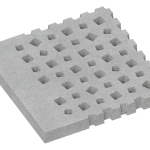 Das System besteht aus vier unterschiedlichen Plattenvarianten im Format 100×100×10 cm, jeweils mit integrierter Stahlarmierung. Die Platten verfügen über verschieden gestaltete Einlassöffnungen, die wahlweise zur Begrünung oder zur Splittfüllung genutzt werden können und so eine effektive Entwässerung und Versickerung ermöglichen.