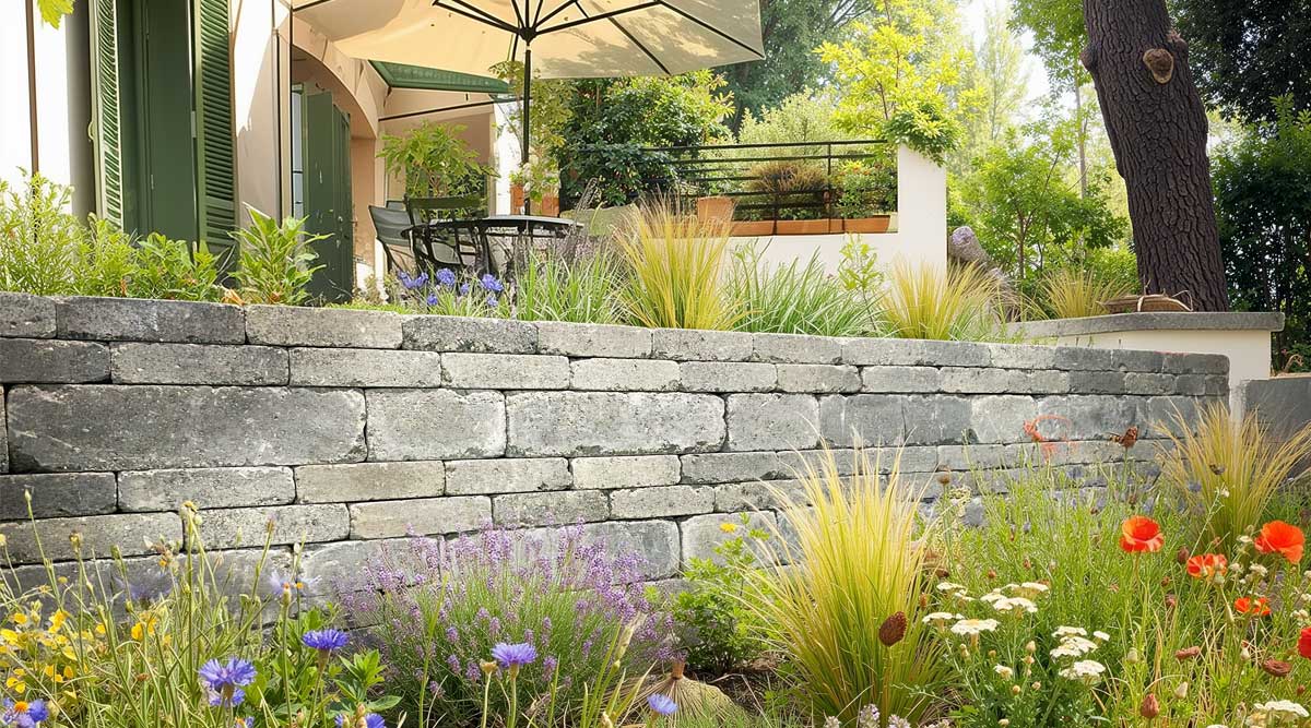 Gradlinige, elegant melierte Mauer mit innovativem Nut- und Federsystem