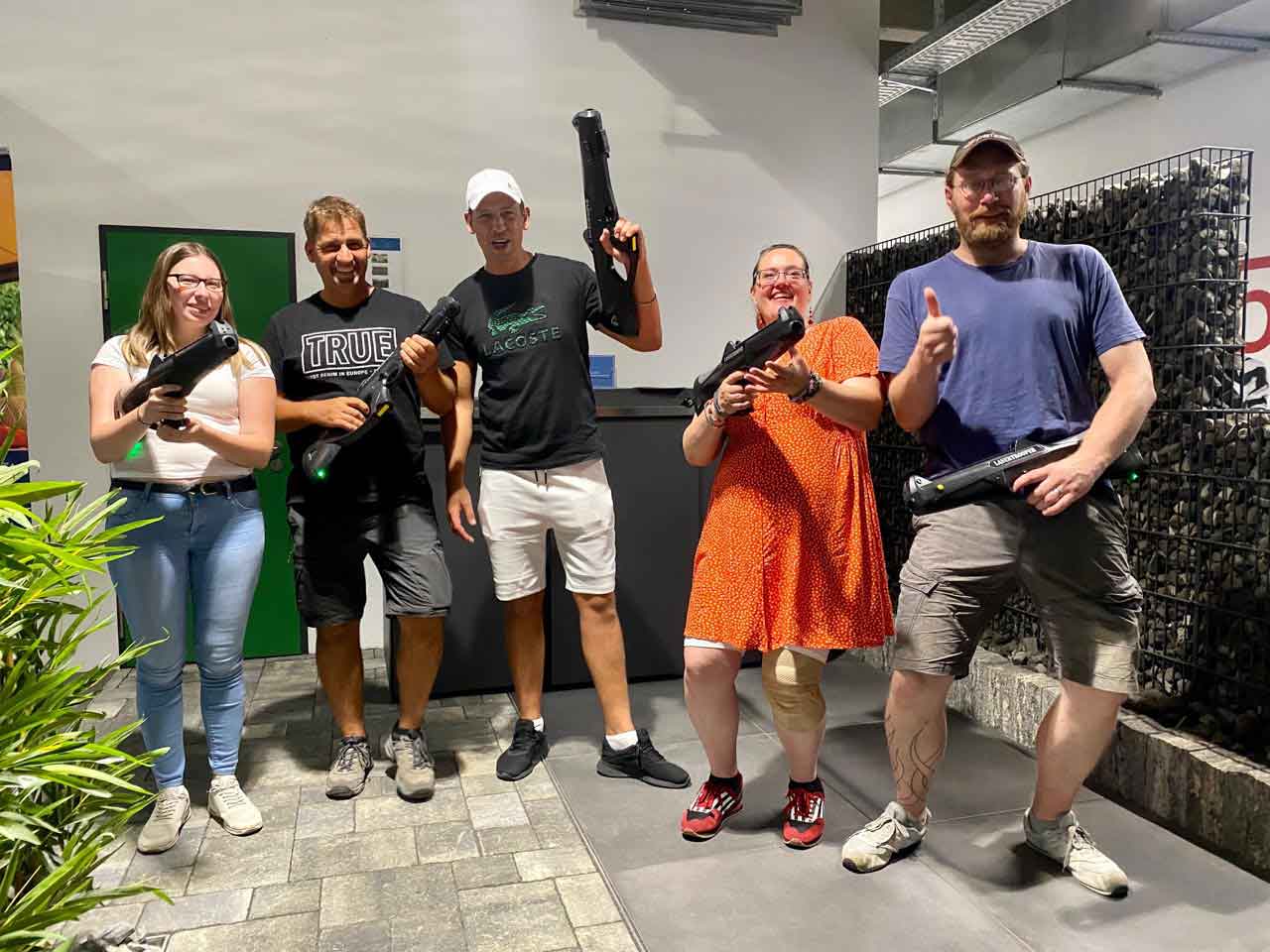 Großer Bahnhof im Vertriebszentrum Langenfeld am Freitag, den 2. September 2022. Nach Feierabend trafen sich die Mitarbeiterinnen und Mitarbeiter der KOLL-Steine-Standorte aus Bonn, Alsdorf und Langenfeld beim alljährlichen internen Sommerfest zum gemeinsamen Abendessen und anschließendem LaserTag-Cup im Showroom.