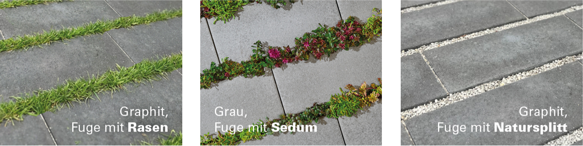 Ob Rasenfugen, Sedumfugen oder die Verwendung von Natursplitt – dieses System ermöglicht eine natürliche Begrünung von Flächen und unterstützt gleichzeitig eine moderne, geradlinige Optik.