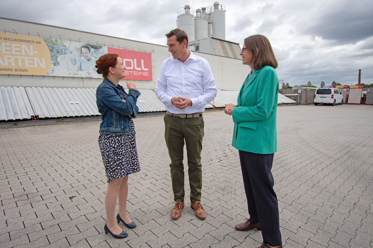 Oberbürgermeisterin Katja Dörner und Wirtschaftsförderin Victoria Appelbe besuchen das Unternehmen Koll Betonsteinwerke in Beuel an der Maarstraße.