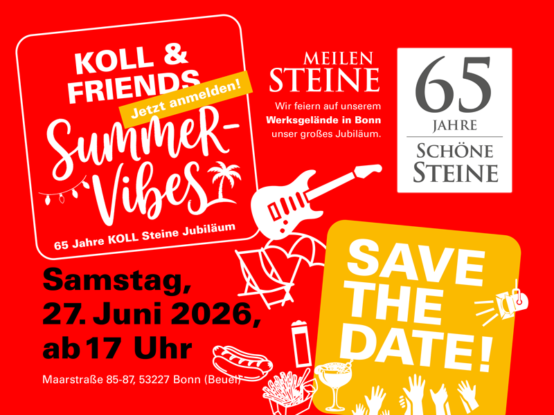 Unsere „Meilensteine“ stehen für die Entwicklung von KOLL Steine, für Ideen, Fortschritt und viele gemeinsame Projekte. Genau diese Geschichte möchten wir feiern – bei unserem großen Jubiläumsfest.